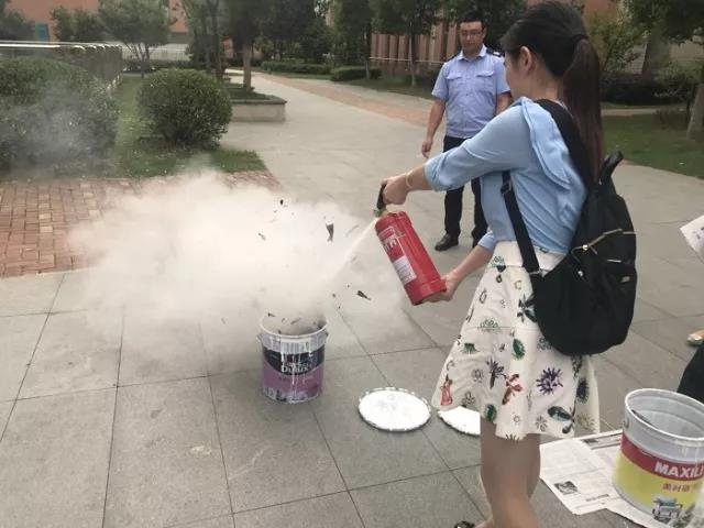 随后,消防指挥员在现场讲解灭火器类型的区分,灭火器的使用,扑灭初级火灾的注意事项等消防知识,各位教职工纷纷拿起灭火器进行实战演练。