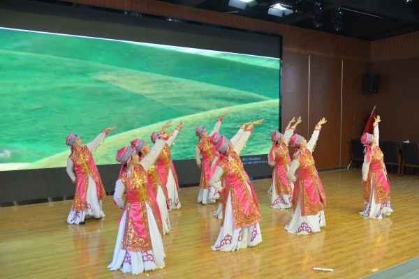 精彩纷呈的演出在舞蹈班学员表演的蒙古族舞蹈《鸿雁》中拉开序幕,悠扬的马头琴诉说思乡的惆怅,优美舒展的舞姿让人们立刻梦回大草原;声乐班的女生合唱《军港之夜》把观众带入到了诗的意境,画的色彩中;瑜伽班表演的《拜日》带领大家领略到了瑜伽的柔美和灵动;男生合唱《小路》轻快婉转、《共青团之歌》激情澎湃,让人沉醉;当音乐遇见书法,又会碰撞出怎样的火花?书法班学员带来情景剧《这世界那么多人》,抒发了学员们对开放大学的热爱和感谢;电钢琴班学员胡砚平深情款款地弹奏一曲《月亮代表我的心》,触动了大家的心灵;模特形体班的学员带来模舞《又见江南雨》深刻演绎了“江南有佳人,容华若桃李,顾盼皆生辉”。